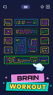 Wyróżnia się minimalistycznym stylem, zapewniającym czyste i niezakłócone doświadczenie. Czarne tło stanowi idealne płótno dla jaskrawych, kolorowych strzałek, które z łatwością przykuwają wzrok, eliminując wszelkie wizualne rozpraszacze. Brak presji czasu i intensywnych animacji sprawia, że Arrows Escape to idealna propozycja na chwilę relaksu, pozwalająca skupić się wyłącznie na radości z rozwiązywania zagadek. Masz pełną kontrolę nad doznaniami – muzyka i efekty haptyczne mogą być dostosowane do Twojego nastroju, a gra nigdy nie zakłóca spokoju nagłymi wyskakującymi okienkami.