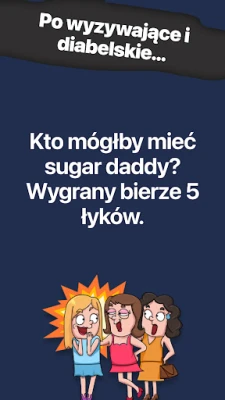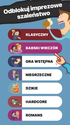 Aplikacja oferuje pięć wyjątkowych trybów gry, stworzonych z myślą o różnorodnych osobowościach i poziomach szaleństwa. Tryb „Klasyczny" to idealna rozgrzewka, która stopniowo wprowadzi Was w wir zabawy. Jeśli szukacie czegoś bardziej pikantnego, „Niesforny" podgrzeje atmosferę intrygującymi pytaniami i zadaniami. Dla nieustraszonych przygotowano tryb „Szalony", oferujący wyzwania z innej planety, a „Hardcorowy" perfekcyjnie łączy ryzyko z absolutnym brakiem zahamowań. Dostępna jest również „Walka zespołowa", gdzie rywalizujecie drużynowo, pamiętając, by mądrze wybrać sojuszników!