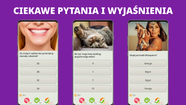 Wyrusz w podróż przez rozległe labirynty wiedzy, gdzie ukończenie każdego poziomu wymaga sprytu i szybkiego myślenia. Za każdą trafną odpowiedź zdobywasz cenne punkty, a każda pomyłka kosztuje Cię jedno z żyć, co nadaje rozgrywce strategiczny wymiar. Gromadź monety, będące walutą QuizzLand, by strategicznie wykorzystywać koła ratunkowe przy najtrudniejszych pytaniach lub odnowić swoje życia. Rywalizuj w ligach z innymi entuzjastami wiedzy, zdobywaj prestiżowe osiągnięcia i buduj swoją reputację jako prawdziwy ekspert. QuizzLand to mistrzowskie połączenie zabawy i edukacji, gdzie każde pytanie staje się okazją do nauki, wzbogaconej o pogłębione wyjaśnienia.