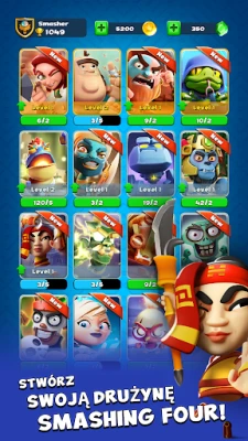 Odkryj głębię Smashing Four w tej kolekcjonerskiej, turowej grze karcianej, gdzie real-time PvP stanowi serce rozgrywki. Wygrywaj zacięte bitwy wieloosobowe, by zdobywać rzadkie orby i monety, kluczowe do rozwoju. Gromadź unikalne karty, by odblokowywać nowych herosów i ulepszać ich umiejętności, przygotowując się na wyzwania w ponad ośmiu innowacyjnych arenach. Każda z nich wymaga świeżego podejścia i sprytnej strategii, aby wspiąć się na szczyt światowego rankingu.